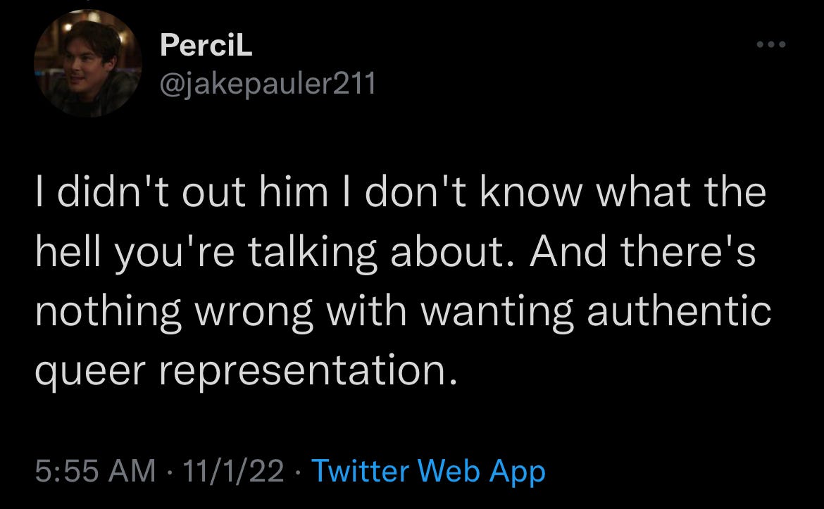 The fact that there are so many of these accounts spreading discord, chaos, bad takes, and honest-to-god lateral violence among queer communities is interesting, especially when one takes into account the antisemitic tweets, likes, and retweets coming from some of those accounts as well. Part of it is likely some kind of organized “raid” from 4chan, but one also has to examine that these tweets are resonating with actual real queer teens who have come to believe that their identity is everything they have because it is a tool they utilize online for internet points and arguments. This is the natural progression of identity politics as it has manifested in the online sphere—when one’s identity is key to the ability to remain in an in-group, one will naturally seek often to identify the out-group as an enemy or trespasser. That bad actors can take advantage of identity politics among green queer groups who have nothing but rage and hormones driving them is honestly a bigger problem that is going to need to get addressed (and soon) if we don’t want larger incidents of violence against queer actors, individuals, and bystanders to occur.